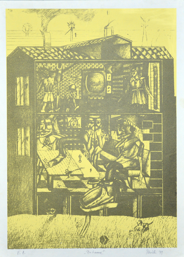 Verso anderes Motiv als unsignierter Druck von Wolfgang Petrick in Gelb