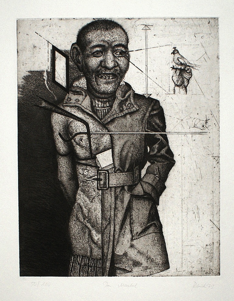 s/w Radierung mit graugrünlichem Plattenton auf Büttenkarton